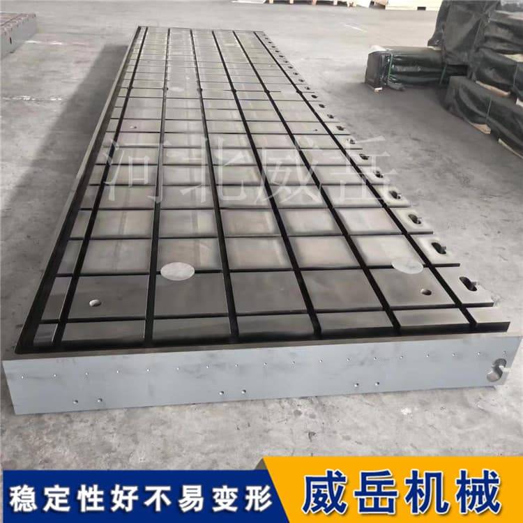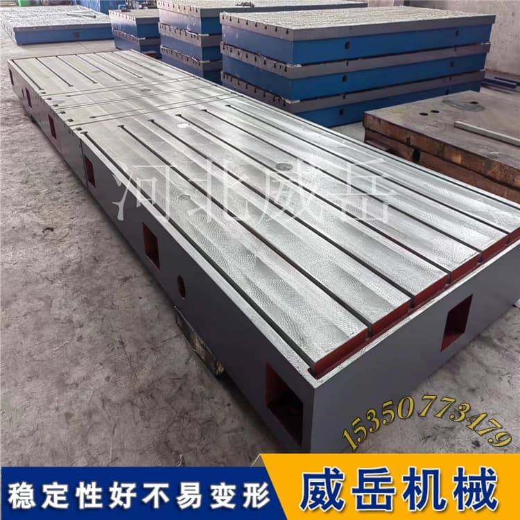 铸造是箱式T型槽平台的基础工序,直接决定平台的刚性与稳定性。1.木型制作:根据图纸制作匹配的木型,还原箱式框架与筋板结构,确保尺寸。2.配料造型:按材质成分配比配料,采用砂型造型工艺,夯实砂型,避免铸造过程中出现变形。3.浇铸冷:将融化的铸铁液缓慢浇注入砂型,控制浇铸速度与温度,浇铸完成后自然冷至室温,避免快冷产生裂纹。4.落沙清理:拆除砂型,清理平台表面的浮砂、毛刺,对浇铸问题进行修补,完成箱式毛坯成型。