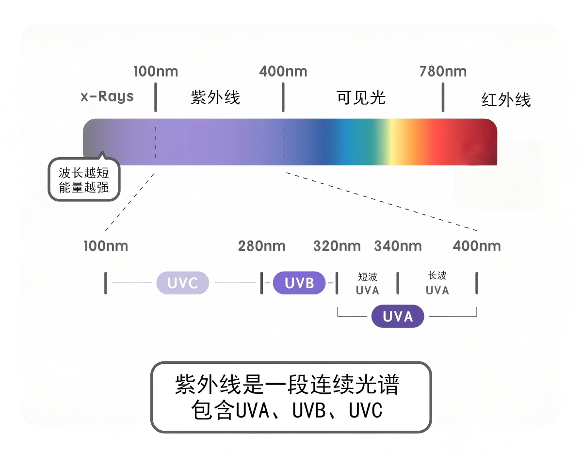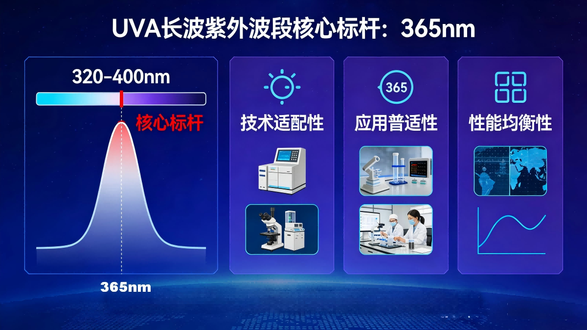 在320–400nm的UVA长波紫外波段中,365nm是兼具技术适配性、应用普适性与性能均衡性的核心标杆。它以独特的波段优势,在UVA区间中占据不可替代的核心地位,成为连接紫外技术与多元应用场景的关键桥梁。