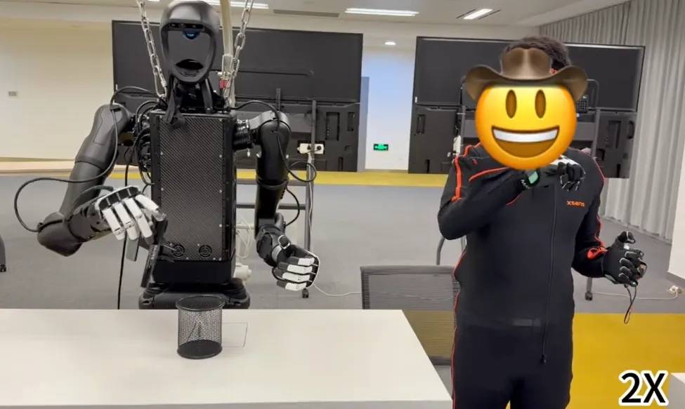 基于外骨骼:使用运动学对齐的机械服进行直接关节映射,搭配霍尔效应传感器手套,每只手可提供15个自由度。